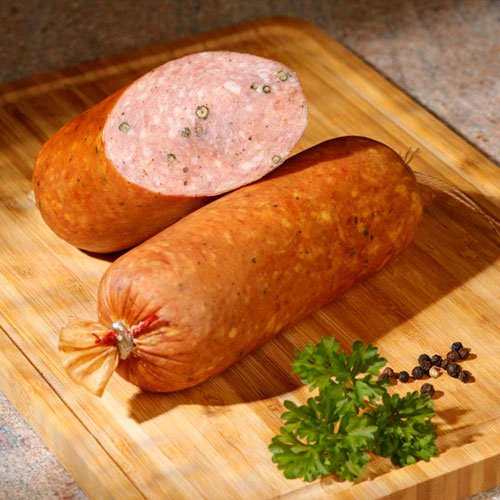 Unsere Kochsalami vereint den typischen Salami-Geschmack mit einer besonders milden und zarten Note. Hergestellt aus hochwertigem Schweinefleisch und sorgfältig ausgewählten Gewürzen, wird diese Spezialität schonend gegart, wodurch sie ihre weiche Konsistenz und das ausgewogene Aroma erhält. Perfekt für alle, die es gerne herzhaft, aber nicht zu intensiv mögen.